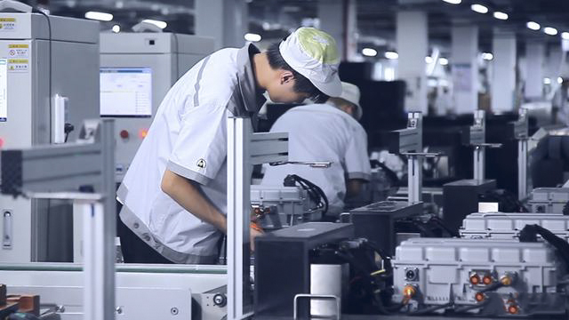 株洲力慧科技有限公司生产车间,一台台新能源汽车的PEU从智能制造生产线下线。