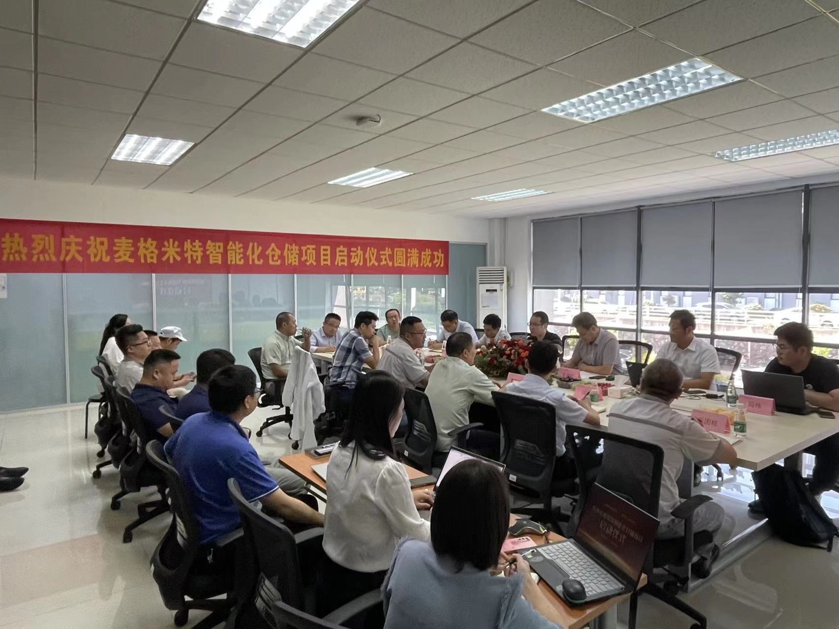 会上双方就项目如何规划及实施展开深入交流研讨。李升付总将“株洲麦米电气智能化仓储项目”比作自己的"孩子",将项目实施过程比作对孩子的培养。他期望东杰智能与麦米电气共同协作,确保项目早日顺利完成。