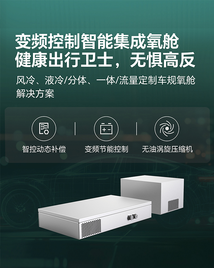 麦米电气基于核心FOC变频控制算法,自研无油涡旋压缩机及车机互联智能控制,打造轻音、轻量、小型、高效高端智能氧舱。