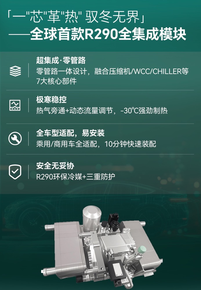 麦米电气旗下应雪科技电动汽车热管理系统,采用CO₂自然工质作为制冷剂,安全、环保、高效,是汽车热管理行业的发展趋势。该系统采用低温热泵技术,可在-30℃环境中高效运行,能耗节约高达50%以上,此外,应雪科技同步推出面向量产的CO₂集成阀岛产品,结构更紧凑、可靠性更高。