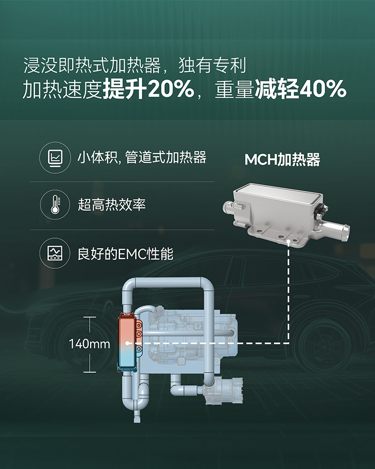 行业首创MINI车载加热器—HUMV2K系列,体积极小、重量极轻、效率高,在新能源汽车、无人车等领域极受关注。此外还有全电压平台(400V, 600V, 800V)两款大功率加热器。